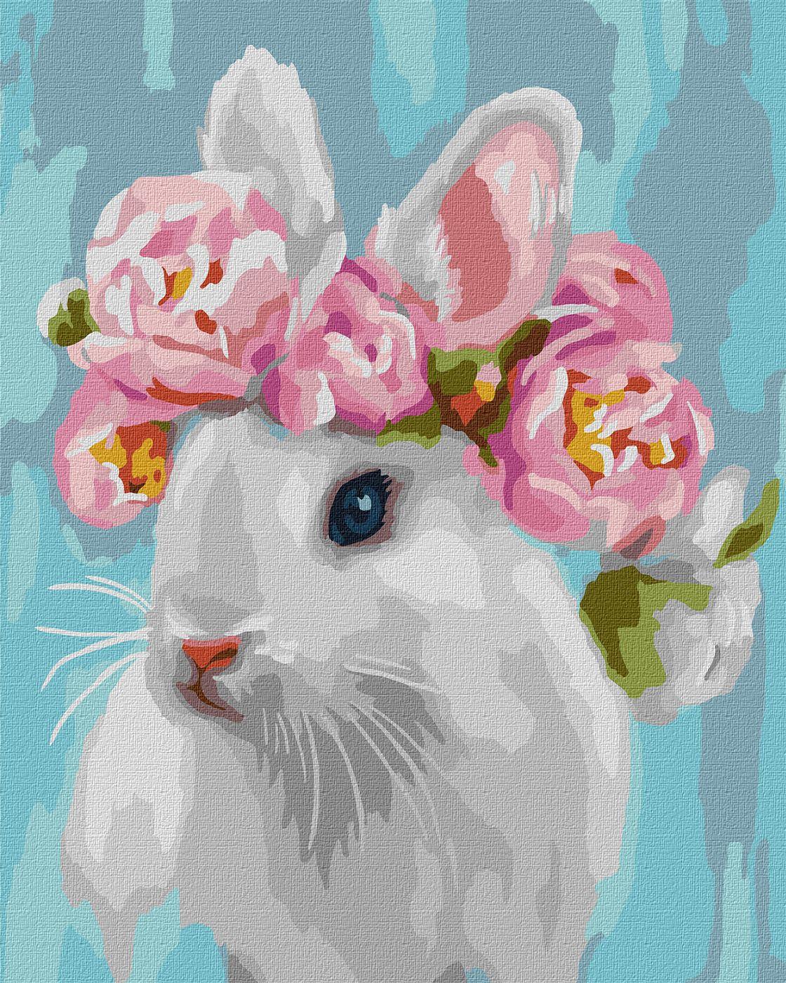 Schilderen op Nummer - Konijn met Bloemenkrans - 40x50 cm
